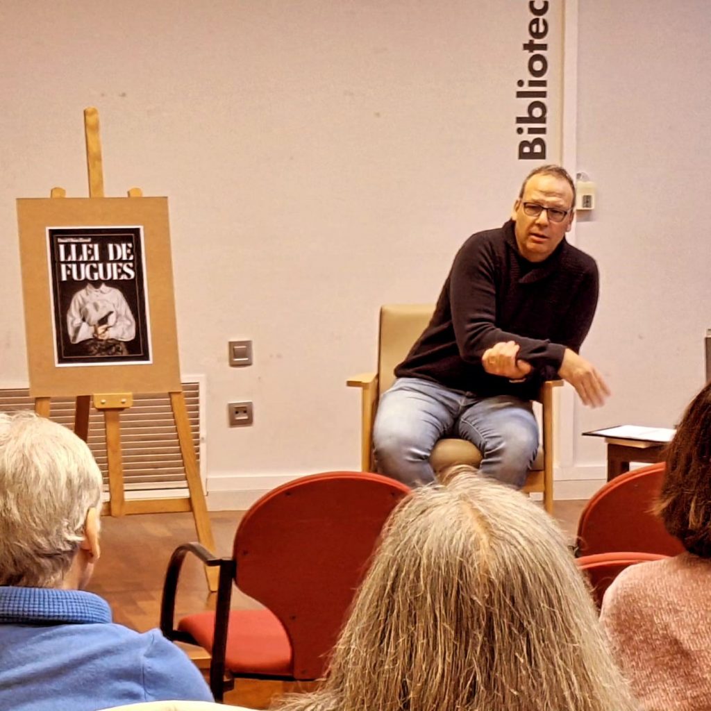 Doncs allà estava jo: entrant a la nau de 1910 amb un exemplar de Llei de Fugues a les mans, amb la intenció de fer una donació. Em va rebre la Cristina Sànchez, directora de la institució i li vaig explicar que havia escrit un llibre i que m’honraria que estigués disponible a la biblioteca perquè tot aquell que el volgués llegir el tingués a l’abast. «Vols fer una presentació?» em digué de sobte.