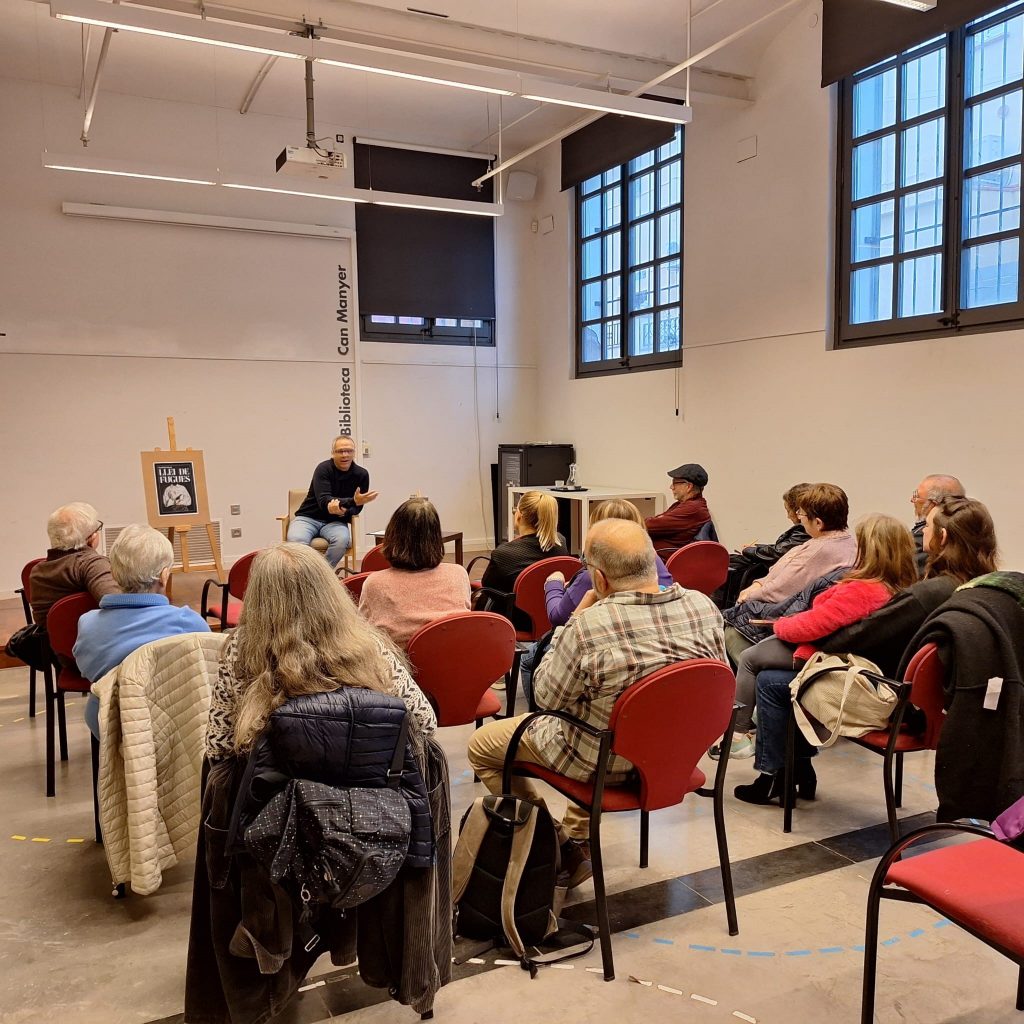 Va arribar el dia i, amb la col·laboració de la gent de la biblioteca, vaig guarnir la sala d’actes amb tota la parafernàlia: un parell d’exemplars damunt d’una taula per tenir-los a mà per si algú treia el nas, un rètol a tocar de la butaca que m’havien preparat i cartells amb informació per endevinar tot el que calgués si a algú li picava la curiositat.
